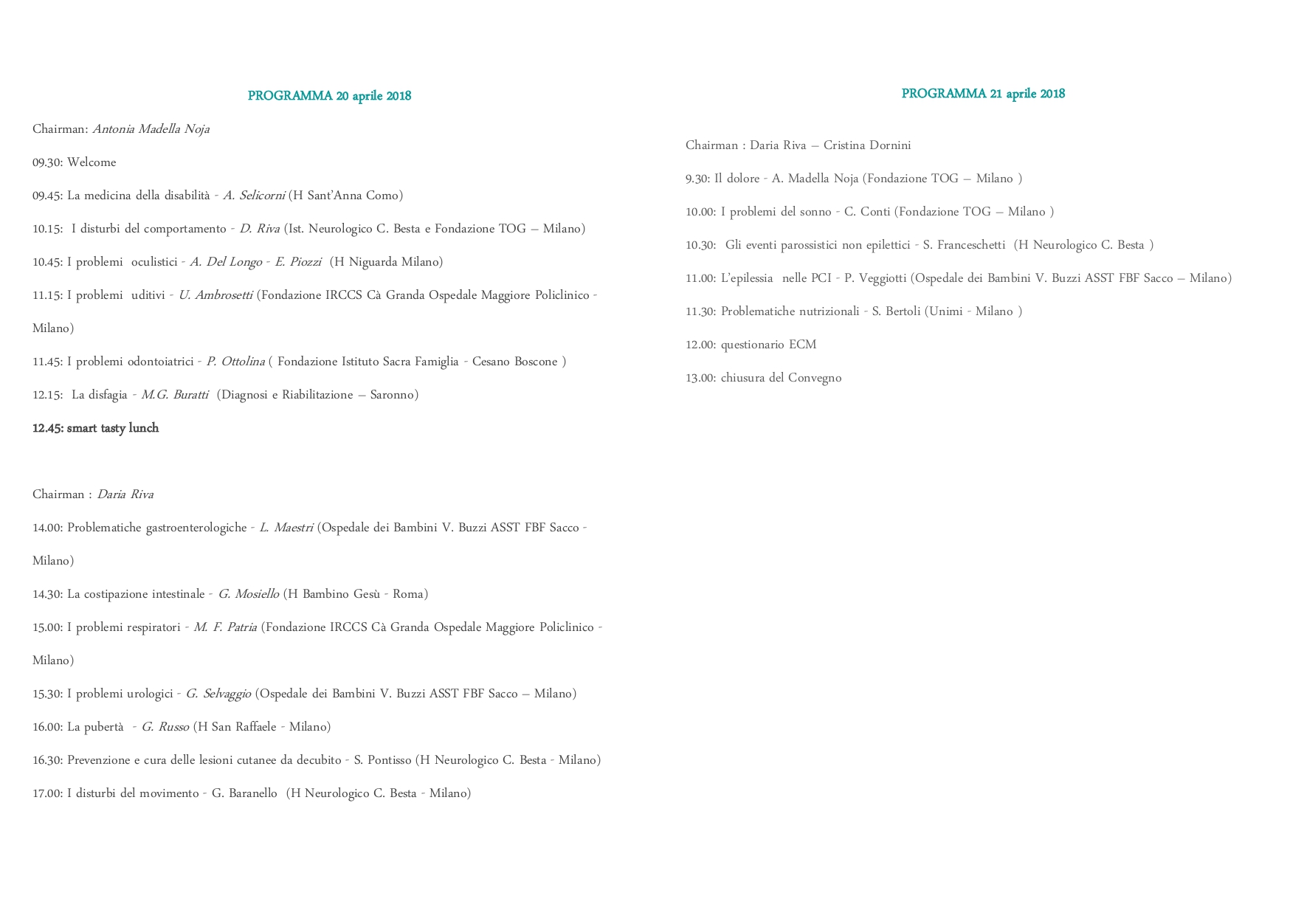 20/21 aprile 2018 – Fragilità nella Fragilità: le patologie associate nelle Paralisi Cerebrali Infantili