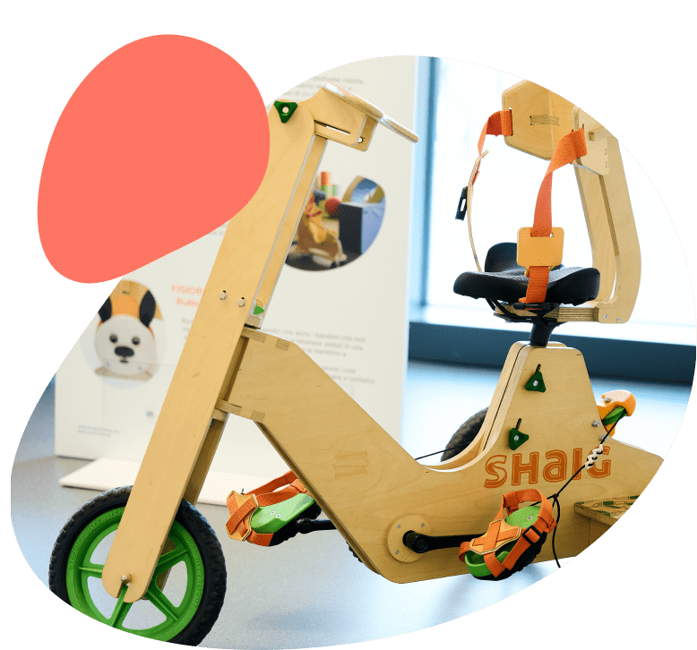 Per noi la cura va oltre la riabilitazione, mirando a valorizzare il potenziale di ogni bambino, cercando di migliorare tutti gli aspetti della sua vita. Da questo approccio è nato Fab Lab, il nostro laboratorio di progettazione e fabbricazione digitale: una stanza per la stampa 3D di ultima generazione, un laboratorio ortopedico, un’officina attrezzata con grandi macchinari, elettroutensili e strumenti di falegnameria.