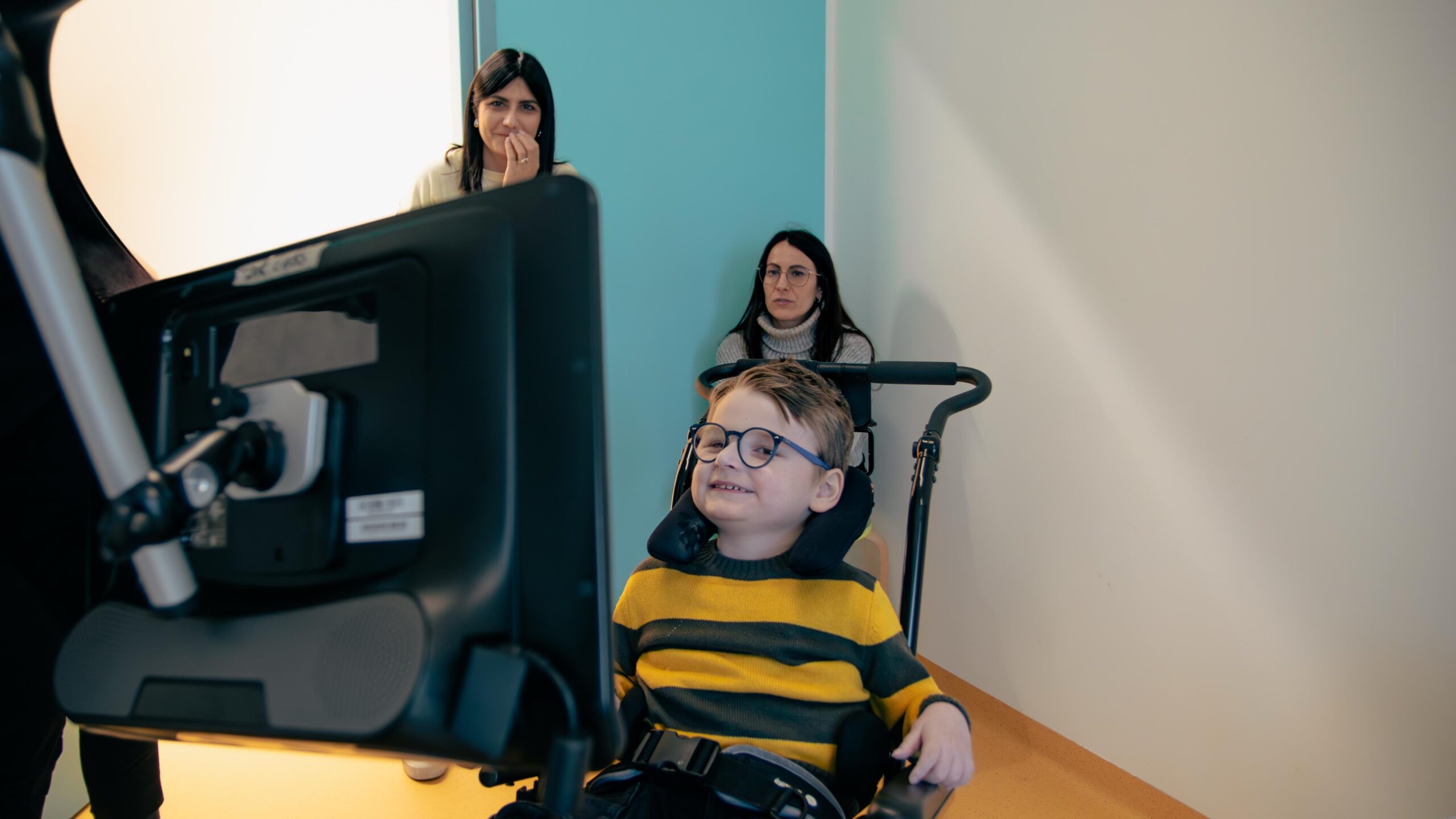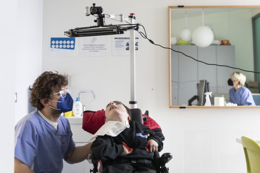 Il sistema Eye Tracking consiste in un puntatore oculare che aiuta i bambini che non possono esprimersi verbalmente ad entrare in relazione con l’altro e a comprendere più profondamente il potenziale cognitivo inespresso.